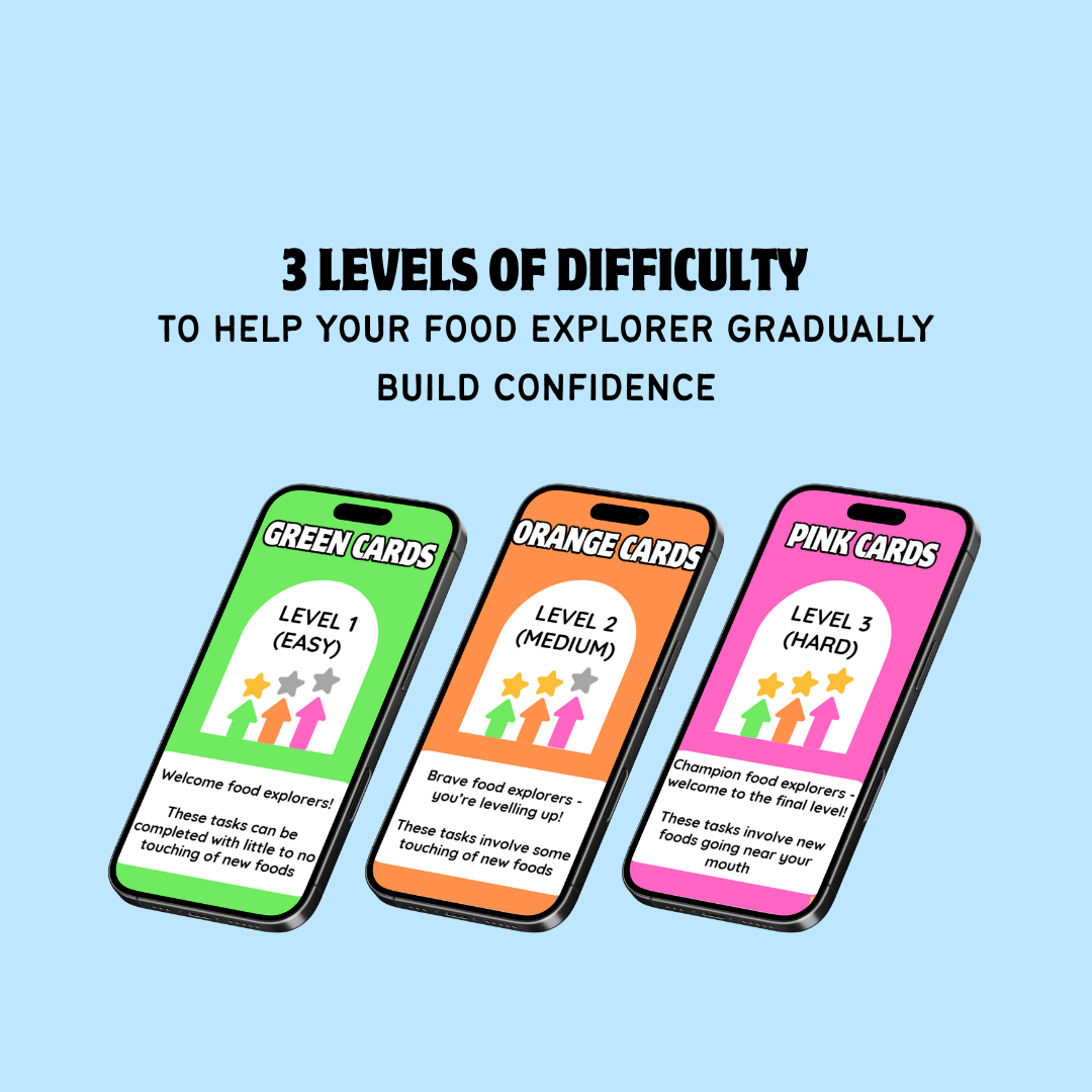 The cards have 3 difficulty levels and each card offers a sensory-based challenge that helps kids feel safer and more curious around new foods. Meet your little eater where they're at and watch their confidence with food grow! And here is the good news: research shows that small, positive exposures over time, (not forcing/sneaking/convincing bites) are what truly support long-term change for picky eaters! Truly no judgement, every family I support has been there! But this game is built around the real evidence that makes change for picky eaters and will help you shift away from the power struggle and back into joy! ❤︎